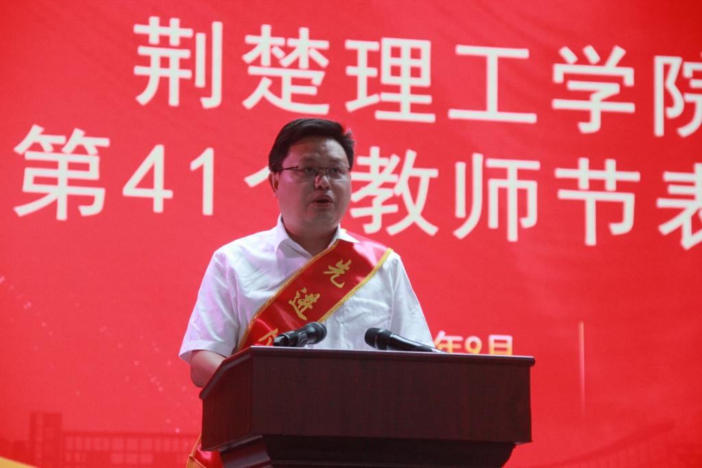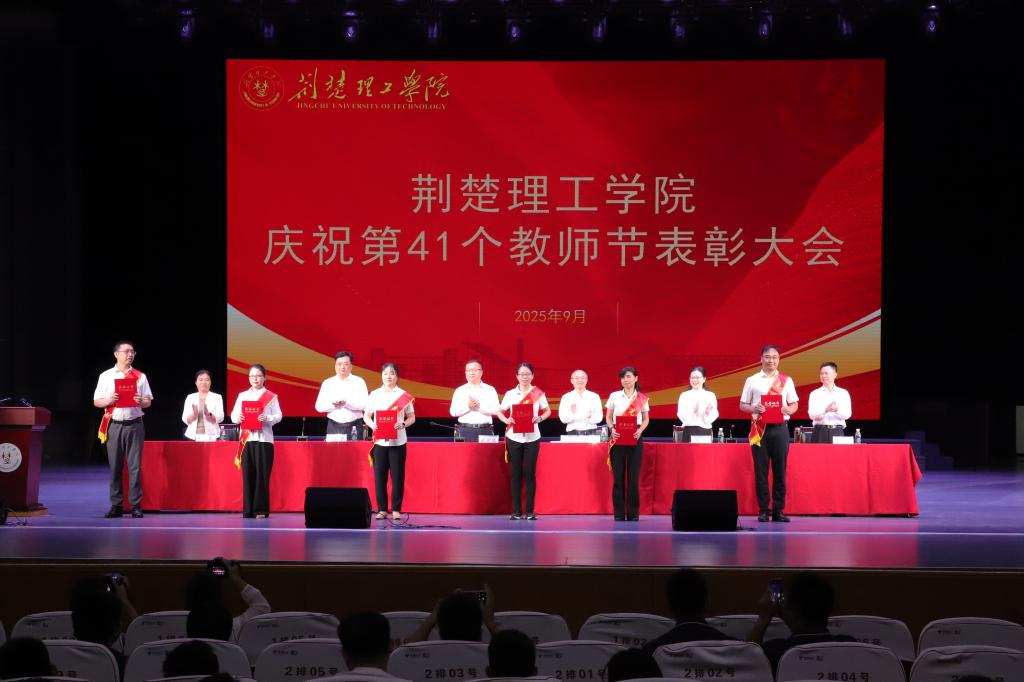 桃李芬芳,教澤綿長。9月8日,我校慶祝第41個教師節(jié)表彰大會在荊楚理工會堂舉行。黨委書記武建斌出席大會并發(fā)表講話,校長張友兵主持會議。全體校領導、中層干部、二級學院(部)教師代表近700人齊聚一堂,共慶教師佳節(jié),共話教育擔當。