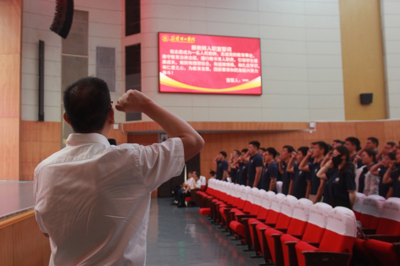 大會最后,師德標兵黃業(yè)傳教授帶領全體新入職教師莊嚴宣誓。(審稿人:鐘紹輝)