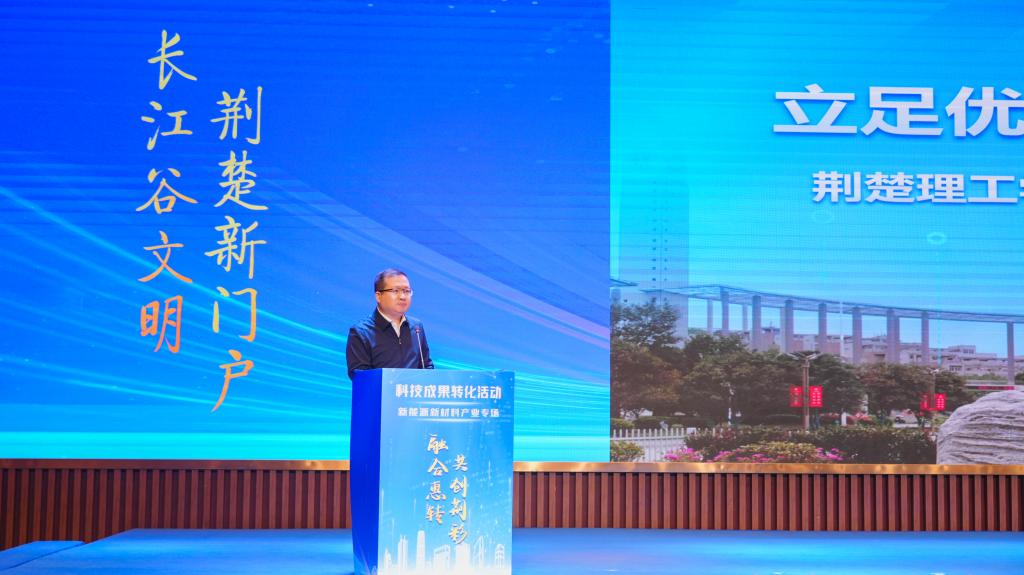 11月28日上午,我校與荊門市人民政府聯(lián)合舉辦的“融合惠轉(zhuǎn)?共創(chuàng)荊彩”科技成果轉(zhuǎn)化活動(dòng)在荊楚科創(chuàng)城國(guó)際會(huì)展中心舉行。荊門市委書記胡亞波,市委副書記、市長(zhǎng)陳家偉,湖北省經(jīng)濟(jì)和信息化廳二級(jí)巡視員熊兵舫,市委常委、市委秘書長(zhǎng)劉克雄,市政府副市長(zhǎng)高刃,我校黨委書記武建斌,副校長(zhǎng)譚新玉、龔權(quán)出席活動(dòng)。