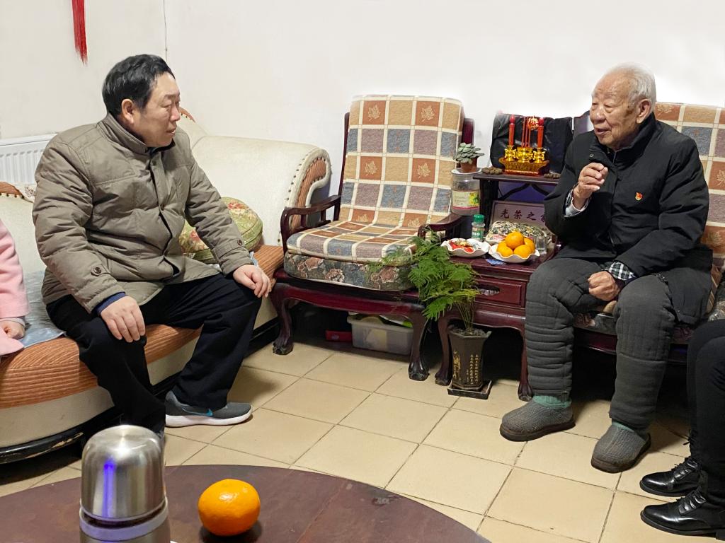 在離休老干部楊安民家中,黨委書記王學(xué)民向楊安民老人致以新春祝福,詳細(xì)詢問楊安民身體狀況和生活情況,并親切叮囑要保重身體,繼續(xù)關(guān)心支持學(xué)校發(fā)展。