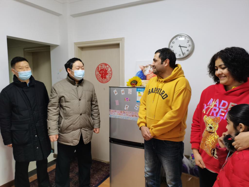 王學(xué)民一行先后來到學(xué)生宿舍樓、外籍教師宿舍樓、校醫(yī)院、留學(xué)生公寓樓、監(jiān)控室、校門值班崗?fù)ぁ⑿姓侵蛋嗍业葓?chǎng)所,與值班人員親切握手、交談,了解節(jié)日期間疫情防控、校園安全、后勤保障等工作落實(shí)情況和設(shè)施設(shè)備運(yùn)行情況,對(duì)大家在春節(jié)期間舍小家、顧大家,犧牲與家人團(tuán)聚時(shí)間堅(jiān)守崗位、辛勤工作表示衷心感謝。