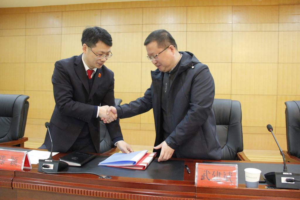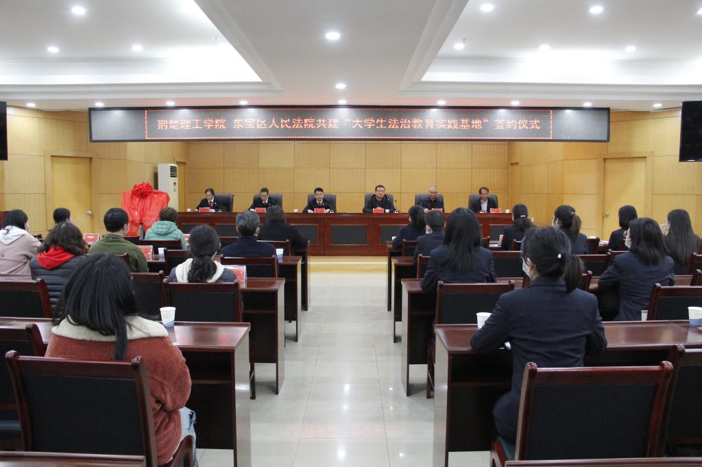3月24日下午,荊楚理工學(xué)院“大學(xué)生法治教育實(shí)踐基地”授牌儀式在東寶區(qū)人民法院舉行。我校黨委副書記武建斌,東寶區(qū)人民法院黨組書記、院長騰穎分別代表荊楚理工學(xué)院和東寶區(qū)人民法院簽署《大學(xué)生法治教育實(shí)踐基地合作協(xié)議書》,共同為“大學(xué)生法治教育實(shí)踐教學(xué)基地”揭牌。