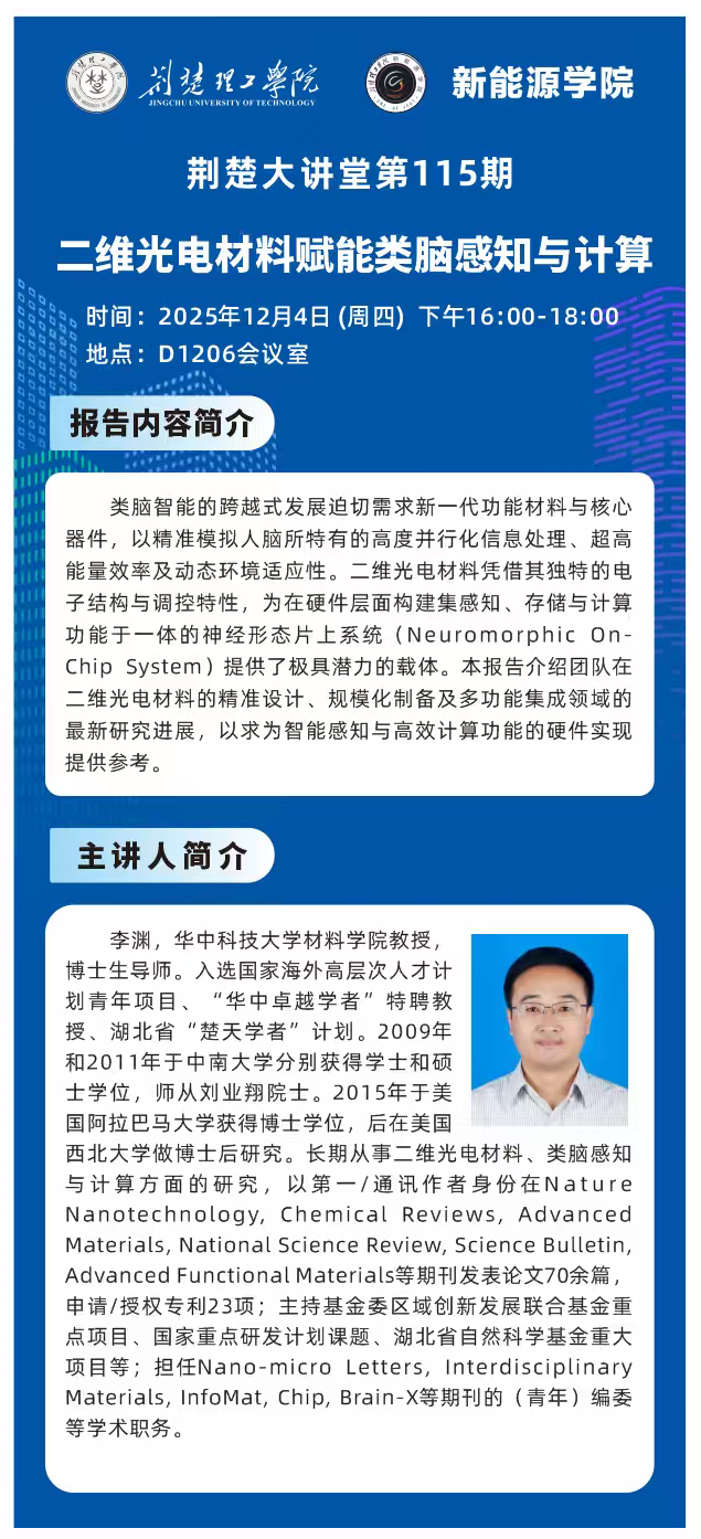 荊楚大講堂第115期:二維光電材料賦能類腦感知與計(jì)算