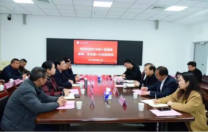 為進(jìn)一步加強(qiáng)校企合作,推進(jìn)產(chǎn)教深度融合。近日,荊門市沙洋縣十里鋪鎮(zhèn)政府、沙洋縣苗木商會企業(yè)家一行來我校生物工程學(xué)院考察交流。生物工程學(xué)院負(fù)責(zé)人、博士教師代表,學(xué)校科技處負(fù)責(zé)同志參加此次考察交流。