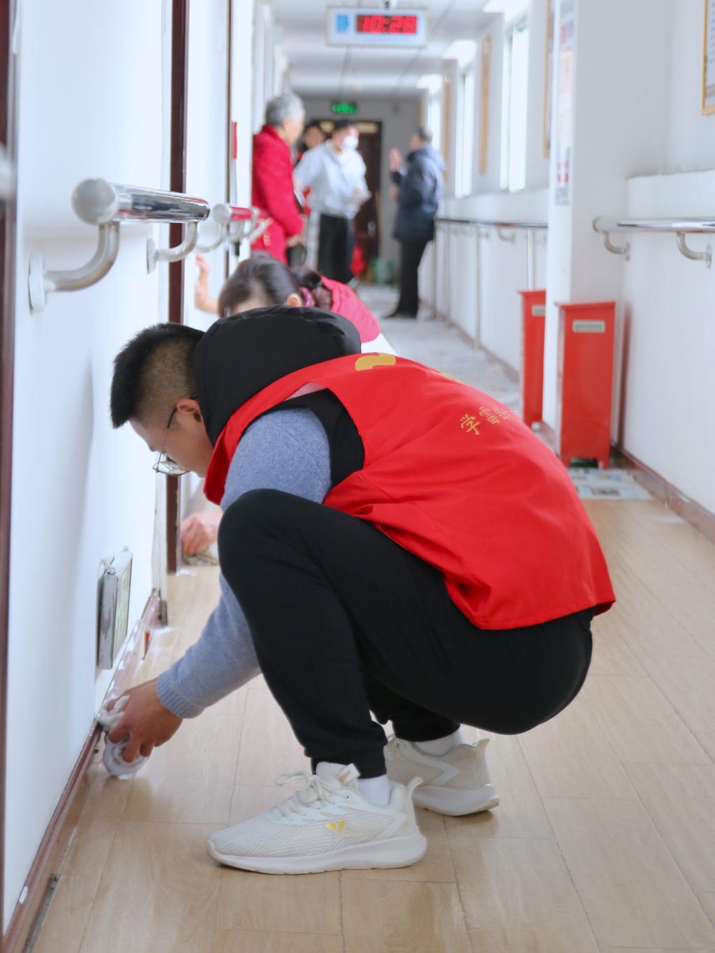 活動(dòng)當(dāng)天恰逢老人生日,志愿者們精心布置了生日?qǐng)龅兀蠹覈谝黄馂槔先藗兂鹆松崭瑁蜕仙兆8!V驹刚邆冞€為老人們表演了太極拳、手勢(shì)舞、傳統(tǒng)武術(shù)、大合唱等精彩節(jié)目,博得在場(chǎng)老人們的陣陣掌聲。才藝展示結(jié)束后,志愿者分組走進(jìn)宿舍探望,為老人們打掃衛(wèi)生,收拾整理床鋪,傾聽老人心聲。