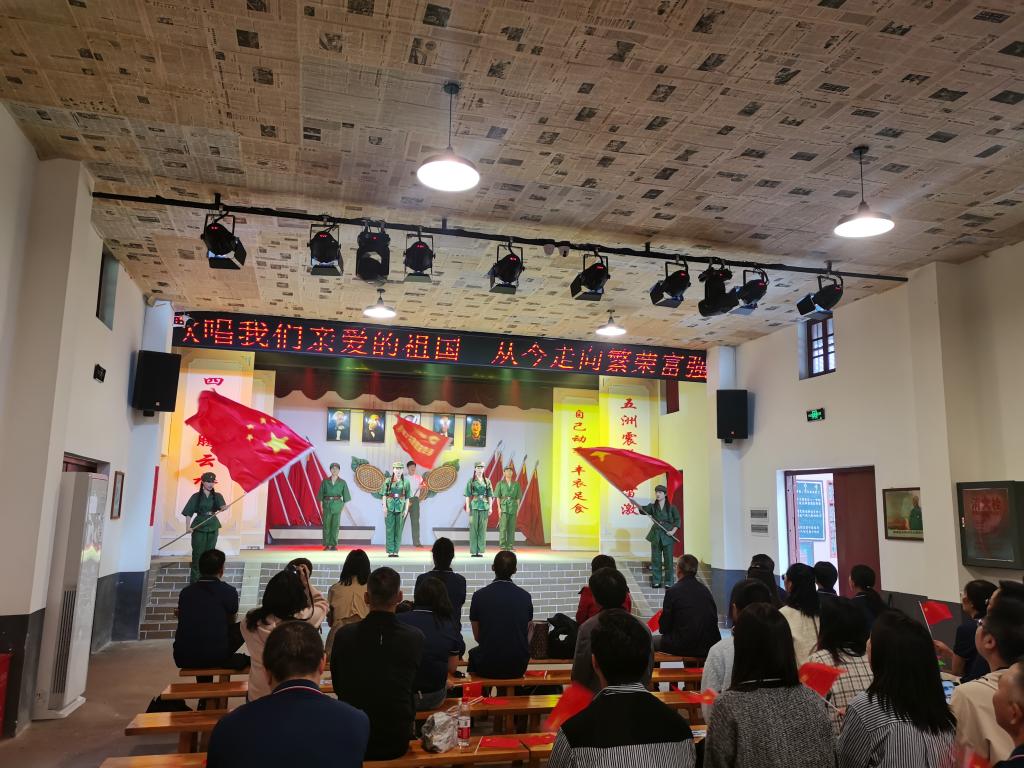 研學(xué)人員參觀了人民公社舊址、《毛澤東語錄》墻等革命文物,感知革命時(shí)期英勇前輩們的艱苦生活,隨后瞻仰了毛主席紀(jì)念雕像,重溫了入黨誓詞,依次為毛主席獻(xiàn)花并鞠躬,以示對偉人的崇敬與懷念。最后,通過觀看《紅旗頌》《映山紅》《中國人民志愿軍戰(zhàn)歌》《紅梅贊》《歌唱祖國》等情景劇表演,更加堅(jiān)定了黨員干部傳承紅色基因,汲取奮進(jìn)力量,不忘初心牢記使命,弘揚(yáng)偉大建黨精神的決心。