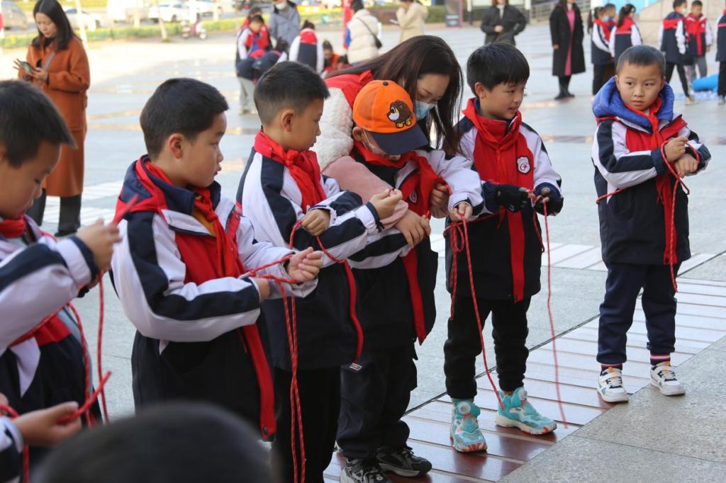 活動中,孩子們分組體驗戶外受傷、急性呼吸道異物堵塞、心臟驟停、重物壓傷、地震、火災(zāi)等不同意外場景,并通過學(xué)習(xí)毛毯擔(dān)架制作、腹部沖擊急救法、AED設(shè)備使用、抬升“千斤頂”、家具防傾倒、“繩結(jié)大比拼”六個環(huán)節(jié),學(xué)會了不同情境下如何自救,提高生存幾率。