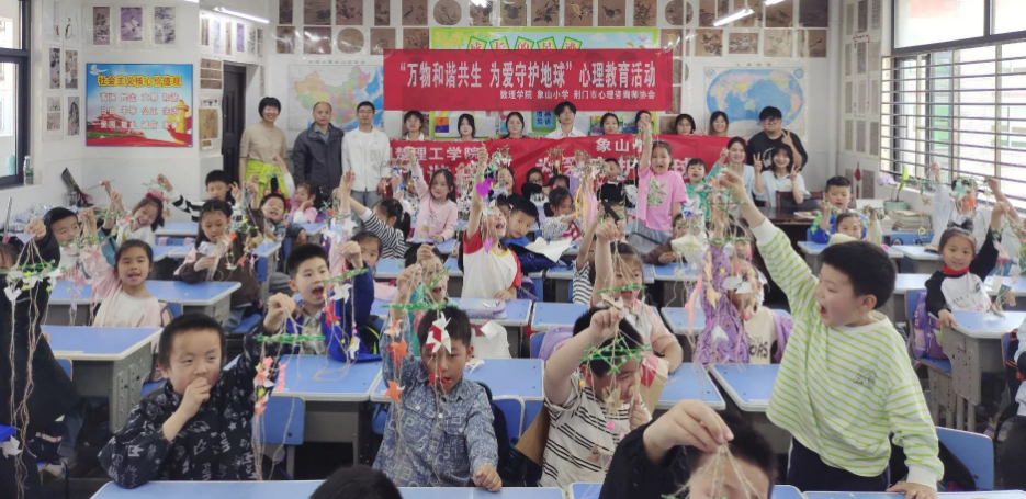 為弘揚(yáng)共筑綠水青山理念,提高新時代青少年環(huán)境保護(hù)意識,近日,數(shù)理學(xué)院青年志愿者服務(wù)隊(duì)赴荊門市東寶區(qū)象山小學(xué)開展“萬物和諧共生,為愛守護(hù)地球”科普活動。