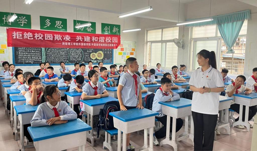 為進一步加強校園安全建設,提高小學生的安全防范意識和自我保護能力,遏制校園欺凌現(xiàn)象的發(fā)生,5月20日下午,外國語學院“荊葵”志愿服務隊前往荊門市實驗小學開展“拒絕校園欺凌,共建和諧校園”主題宣講活動。