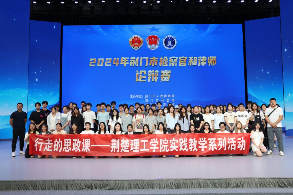 近日,學工部(處)聯(lián)合馬克思主義學院組織160余名學生走進“2024年荊門市檢察官和律師論辯賽”現(xiàn)場,進行思政課實踐教學活動。