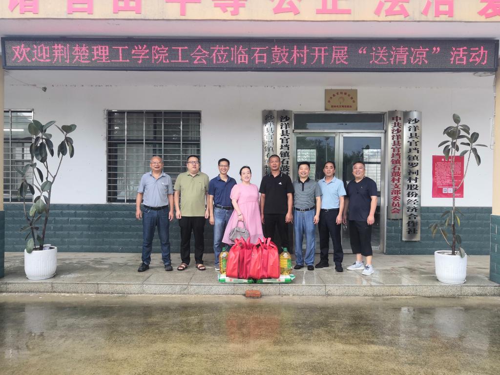 7月4日,校工會(huì)一行赴沙洋縣官垱鎮(zhèn)石鼓村開(kāi)展“送清涼”活動(dòng),看望慰問(wèn)我校駐村工作隊(duì),為他們送去防暑慰問(wèn)品,與相關(guān)人員進(jìn)行訪談交流。