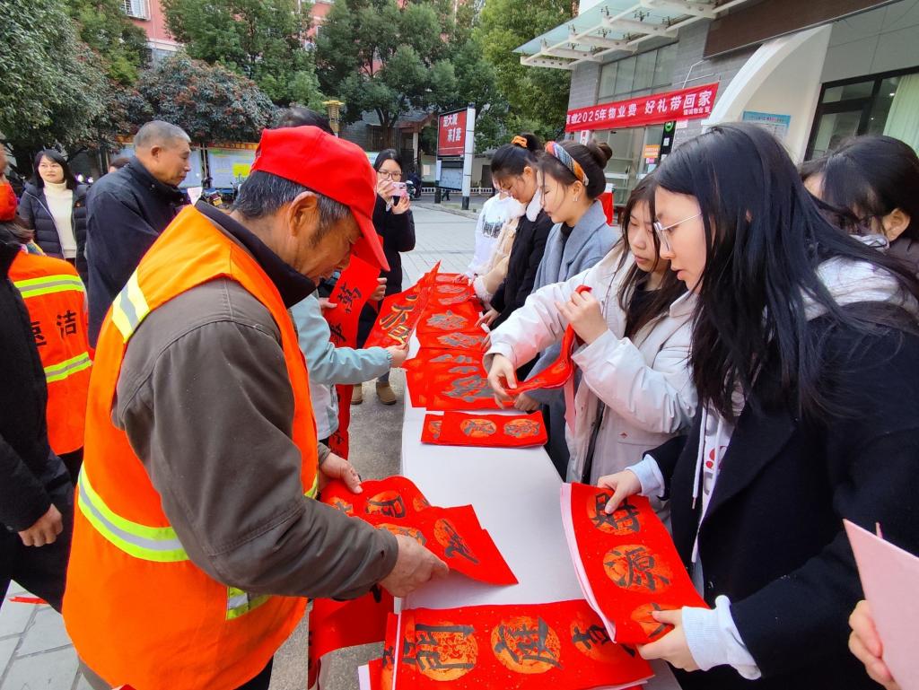 12月30日,師范學(xué)院走進(jìn)蘇畈橋社區(qū)開展“墨香四溢迎新春,黨建引領(lǐng)送祝福”活動。