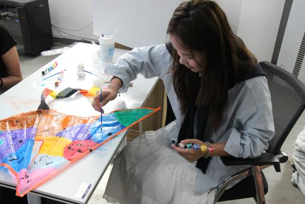 活動(dòng)現(xiàn)場(chǎng),同學(xué)們開(kāi)啟了心靈治愈與美育體驗(yàn)的雙重探索。在手工體驗(yàn)環(huán)節(jié),大家挑選自己心儀的風(fēng)箏樣式和顏料,精心組裝、繪制風(fēng)箏。對(duì)于藝術(shù)學(xué)院的學(xué)生而言,畫(huà)筆是他們表達(dá)內(nèi)心世界的有力工具,他們用靈動(dòng)的筆觸,在風(fēng)箏上繪下色彩斑斕的圖案,將學(xué)業(yè)壓力、生活困擾都隨著顏料揮灑出去,盡情享受手工創(chuàng)作帶來(lái)的樂(lè)趣。