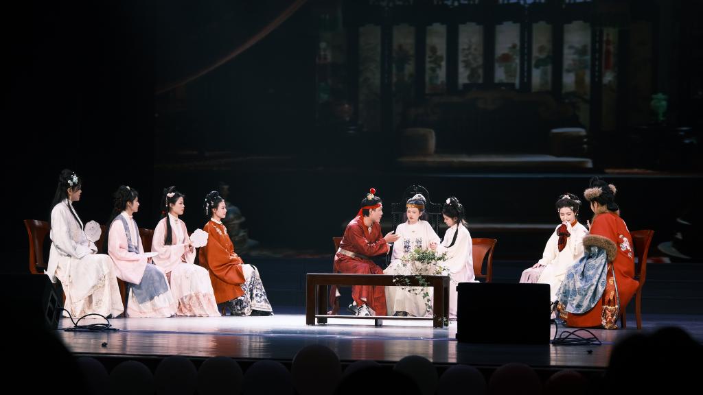 晚會以活力四射的舞蹈串燒拉開帷幕,動感的節(jié)奏與靈動的舞姿瞬間點(diǎn)燃全場。英語話劇《紅樓夢—寶黛初見》融合傳統(tǒng)文化與舞臺藝術(shù),經(jīng)典場景的生動再現(xiàn)為整場晚會增添了濃厚的古典氣息;《瘋狂動物城》英語配音節(jié)選惟妙惟肖,盡顯我院學(xué)子扎實(shí)的外語功底;師生聯(lián)唱三首不同語種外語歌曲,既展現(xiàn)了外院特色,也傳遞了師生同心的溫暖情誼。